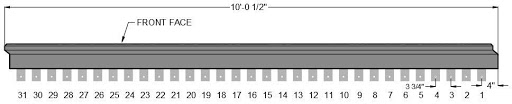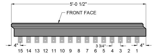 The panel anchor is embedded into the panel a minimum of 4”. The flared, triangular anchor base is positioned behind the panel reinforcing. The maximum number of anchors that can be cast into one row of the 5 x 5 panel is equal to 15 and in one row of the 5 x 10 panel is equal to 31. This allows for the unique placement of the anchors to avoid obstructions and to accommodate many different load cases. The number of anchors is dependent on the number of Grid-Strip soil reinforcing elements that are required to be attached to the panel and is dependent on the project-specific requirements.